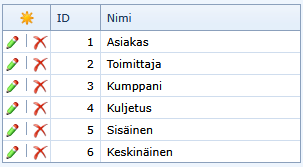 Listaus kumppanirekisterissä käytettävistä tyypeistä.