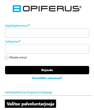 • Mikäli organisaatiolla on AD-kirjautuminen käytössä valitaan kirjautumisikkunasta ”Valitse palveluntarjoaja” ja kirjaudutaan sieltä oman organisaation kautta käyttäjän omilla työasematunnuksilla.