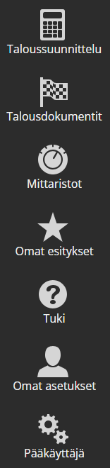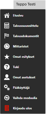 - valikon saa näkyviin viemällä hiiren käyttäjänimen päälle, jonka kautta pääsee vaihtamaan moduulia esimerkiksi budjetointinäkymästä.